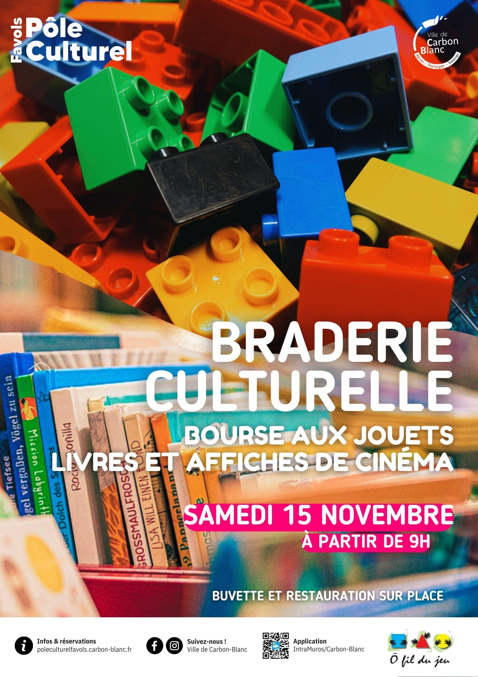 Image BRADERIE CULTURELLE 15/11/2025 Carbon-Blanc Bourse aux jouets, livres et affiches de cinéma Vente Lire la suite