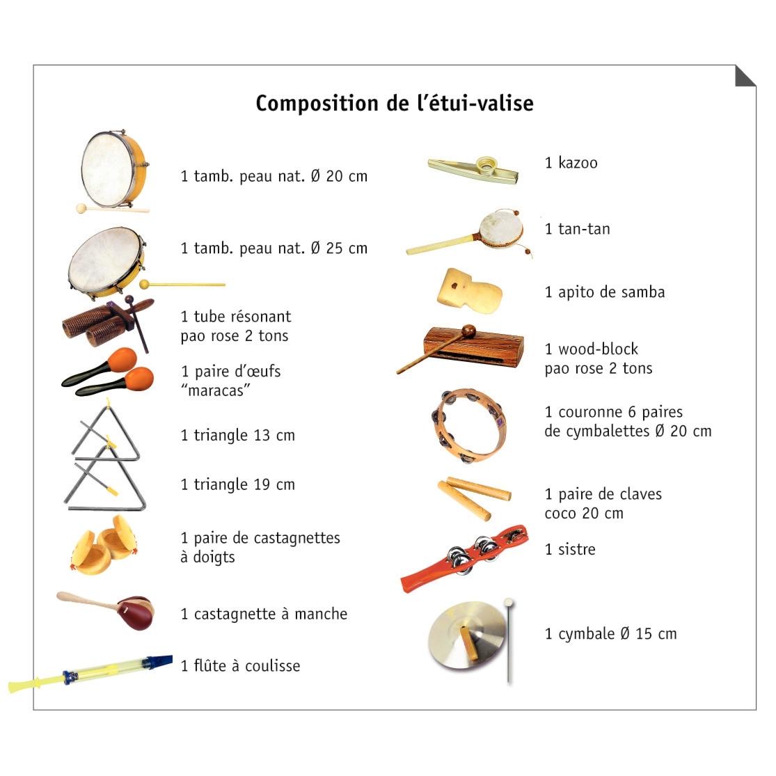 Découvrez un étui-valise garni de 15 instruments de musique qui vous permettra de découvrir et faire découvrir différentes sonorités !