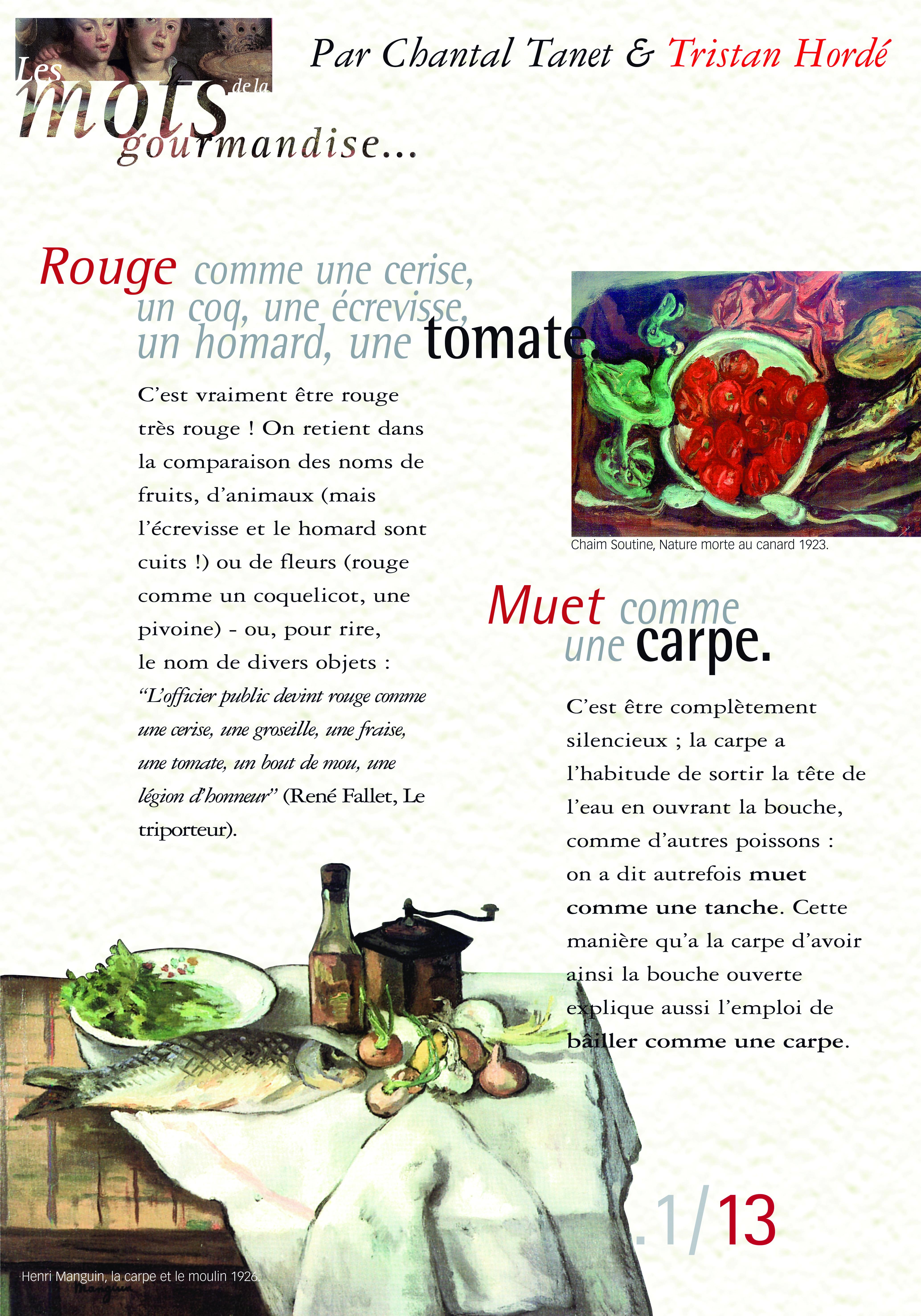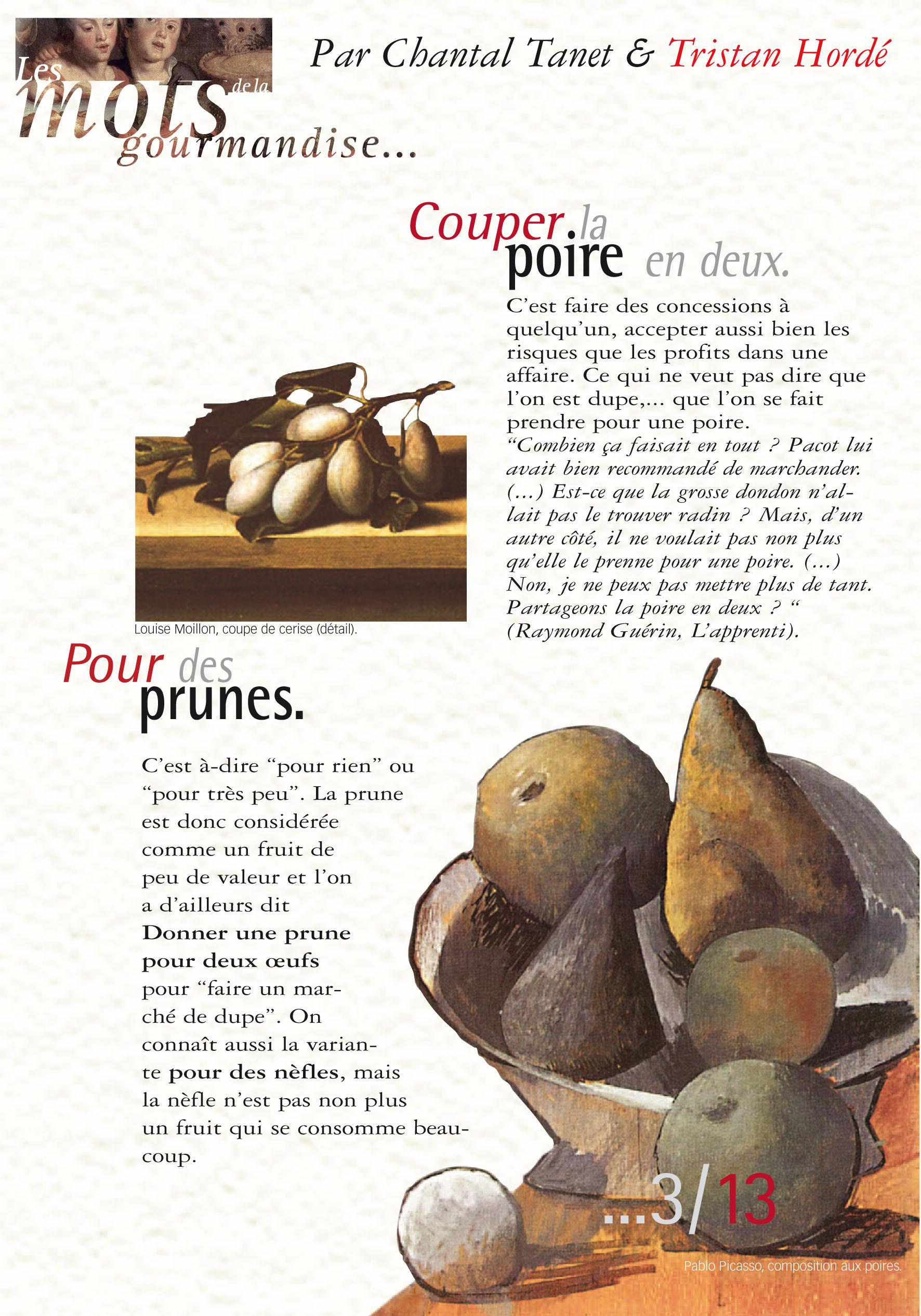 Quelques locutions abordées : muet comme une carpe, haut comme trois pommes, couper la poire en deux, je ne mange pas de ce pain là, marcher sur des œufs ...