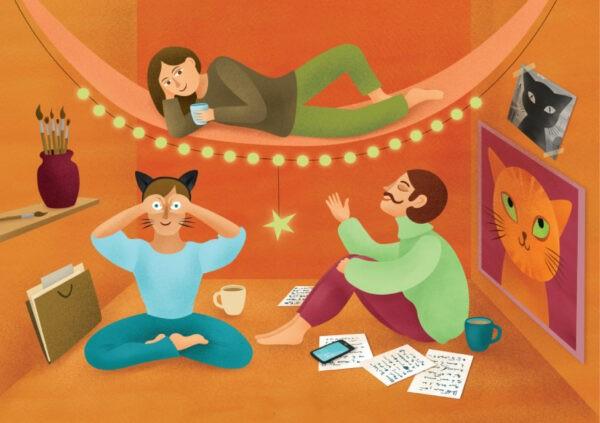 Sous la conduite du chat Minou, nous visitons les différentes familles d'un immeuble et assistons aux préparatifs de Noël de chacune d’elles.