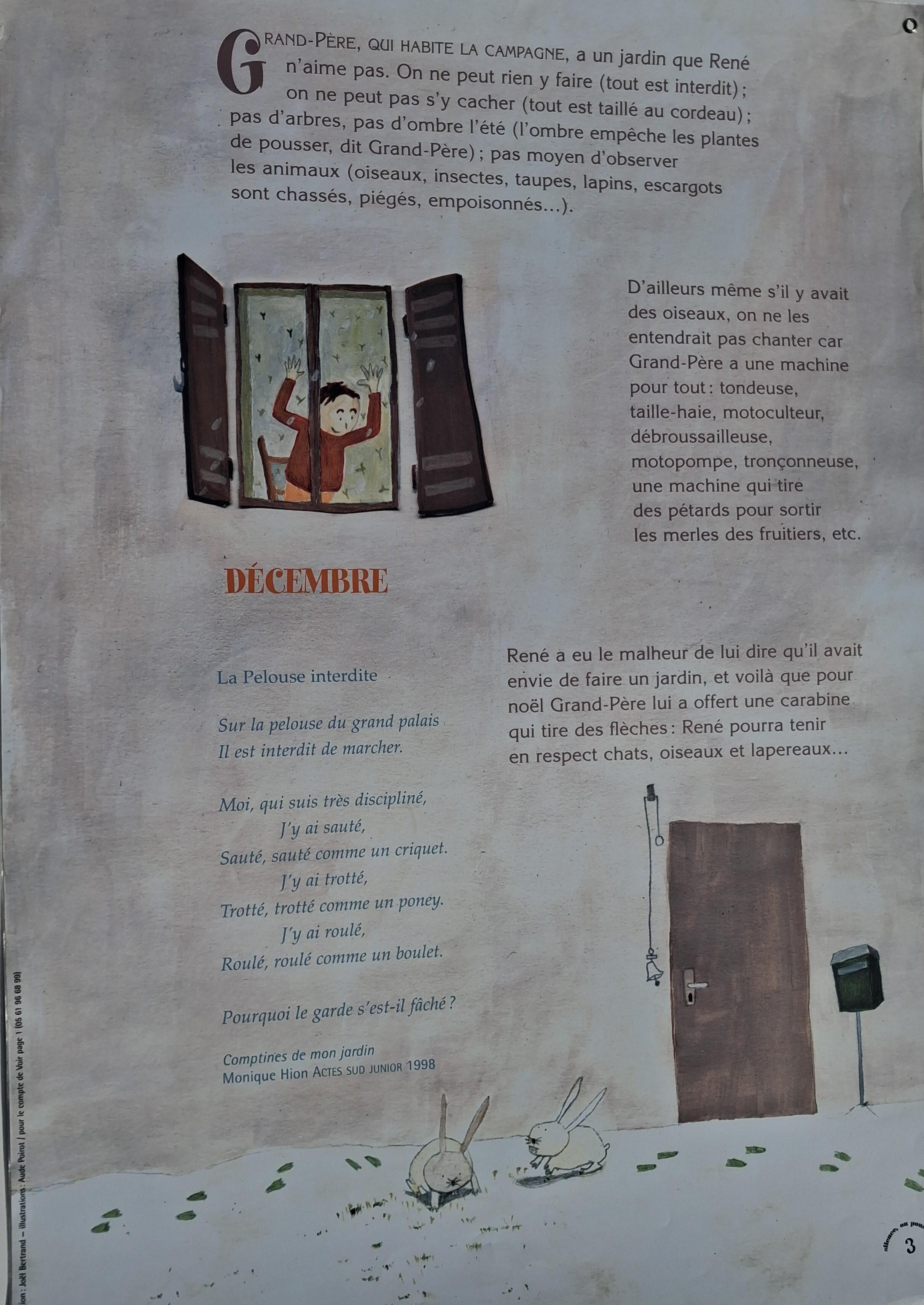 Chaque panneau représente un mois de l’année, les saisons défilent au fil des images.