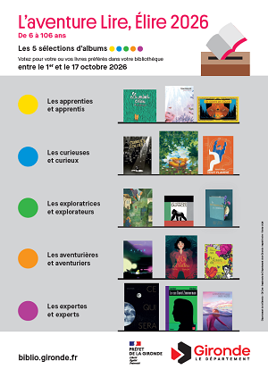 Projet de médiation Lire, élire 2026 : la sélection 15 pépites choisies par des bibliothécaires de Gironde, pour cette 18ème édition de Lire, élire ! Lire la suite